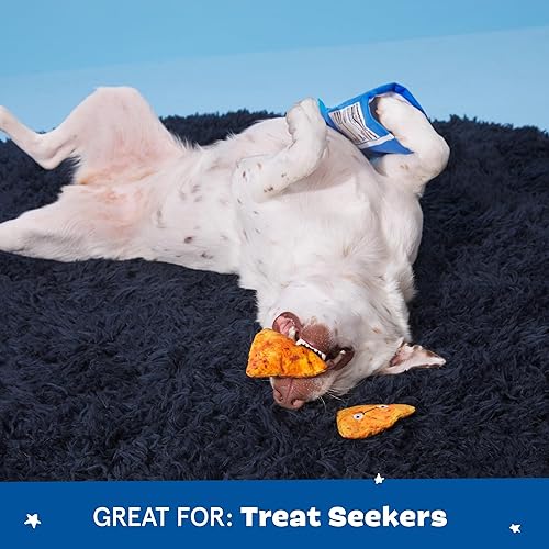 Crazy Crinkle & Squeakers: Fling the crinkly donut box for dogs who love a little extra “crunch.” This extra-engaging sound is great for keeping distracted pups focused on play, with THREE squeakers (because one just isn’t always enough)!