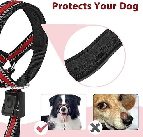 Comfortable Design: No pull head collar comes with plush soft nose pads so you don't have to worry about your dog's nose getting scratched. These soft pads are carefully crafted to ensure your pet is comfortable during walks and training sessions. No pull muzzle harness relieves pressure on your dog's throat and allows your dog to bark, pant, eat, or drink