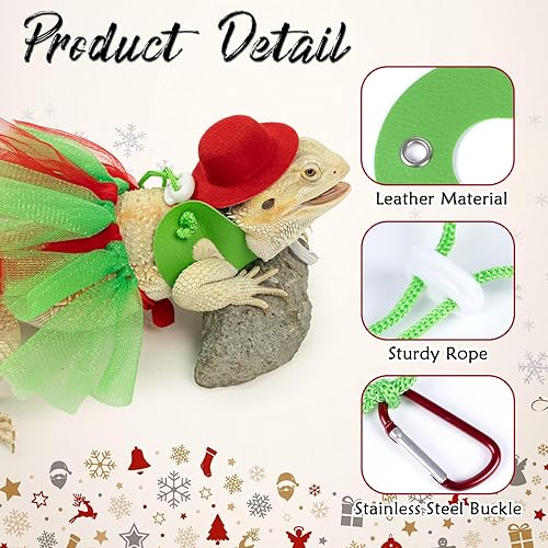 Widely Used: This reptile lizard leopard gecko costume set is suitable for Christmas parties, family gatherings, pet exhibitions and other occasions, allowing your bearded dragon to show its charming style. The leash can be used alone in daily life