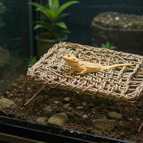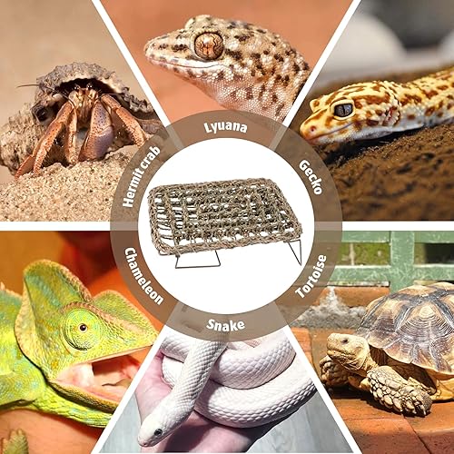 【Breathable Grass Mat】Made of natural grass mat, the reptile hammock provides excellent ventilation, and gecko tank accessories create a comfortable temperature range for your pet. The hand-woven texture is excellent for molting, and bearded dragon toys support healthy skin for scaly pets.