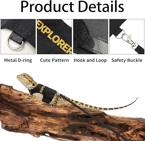 Bearded Dragon Harness and Leash-Bearded Dragon Clothes Lizard Accessories Stuff for Escape Proof Small Animal Reptile Adjustable Harness and Leash Rope for Walking Outdoor(EXPLORER)