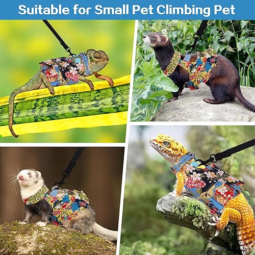 PERFECT SIZE: Small animal leash dress set includes an adjustable chameleon harness and a 65-inch (165cm) leash. the harness fits neck circumferences of 6.3-9 inches (16-23cm) and chest circumferences of 7.67-9.64 inches (19.5-24.5cm). suitable for most small reptiles, ferrets, and hamsters. adjust the clip to secure the fit. note: product sizes are measured manually and may have a 1-2cm tolerance.