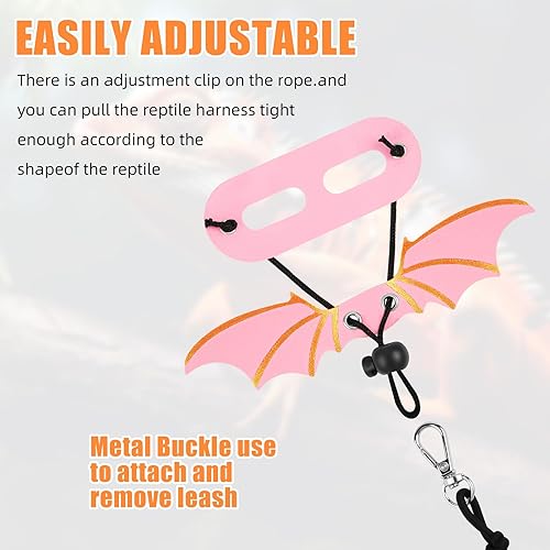 Dinosaur Style Leash: With the latest dinosaur wing design with pink color, this bearded dragon leash harness makes your pet charm and stand out, adding a fun and vibrant element to their outdoor adventures