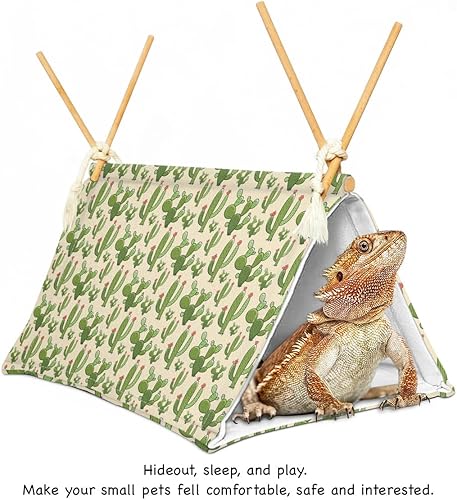 Bearded Dragon Reptile Sleeping Bed Tent Hide Tank Decor Accessories Habitat Shelter for Lizard Bearded Dragon Leopard Gecko (Cactus 1)(cactus 1)