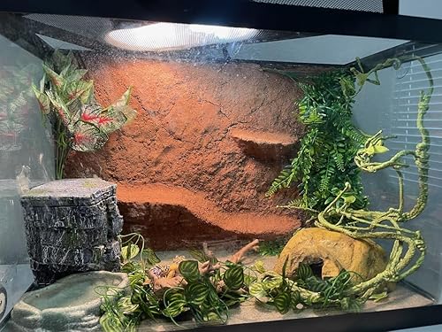 Lush and Lifelike: Enhance the terrarium with our Artificial Reptile Plants Leaves & Vines that add a touch of nature while providing hiding spots for your pet reptile.