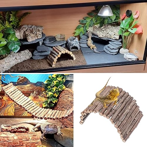 【Natural Habitat Environment】This reptile wooden hideout and climbing accessory provides a safe and cozy resting space for geckos, bearded dragons, snakes, and other reptiles. Made of natural wood, it not only offers your pet a secure hiding spot but also encourages climbing activity, recreating a more natural habitat. An ideal addition to any reptile terrarium.