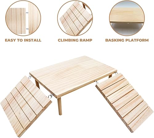 【Durable and Safe】: Made from high-quality, non-toxic wood, this basking platform is sturdy and built to last. The smooth surface ensures there are no sharp edges that could harm your pet, making it a reliable and safe choice for your reptile’s tank.