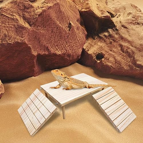 【Reptile Basking Platform】: This wooden basking platform provides a safe and comfortable spot for your bearded dragon, gecko, or snake to soak up some warmth. It’s designed to mimic natural rock structures, giving your pet a perfect basking area that promotes overall health and well-being.