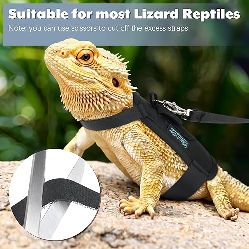 Adjustable Comfort: The neck and chest of this harness are designed with hook and loop; you can adjust the length of the hook and loop to make this small animal harness more suitable for lizards. (Note: You can use scissors to cut off the excess straps)