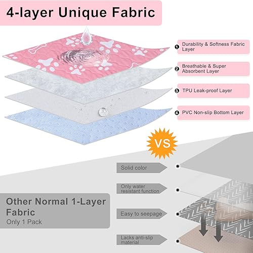 More Absorbent & Odor Control -Triple stitched edges to prevent fraying and dissuade chewers, meaning you're not cleaning up multiple messes. With a high-density absorbent layer and a unique mesh composite process, it can evenly absorb pet urine or surface moisture, effectively control odor, and keep your puppy feeling comfortable all day long while protecting the floor clean.