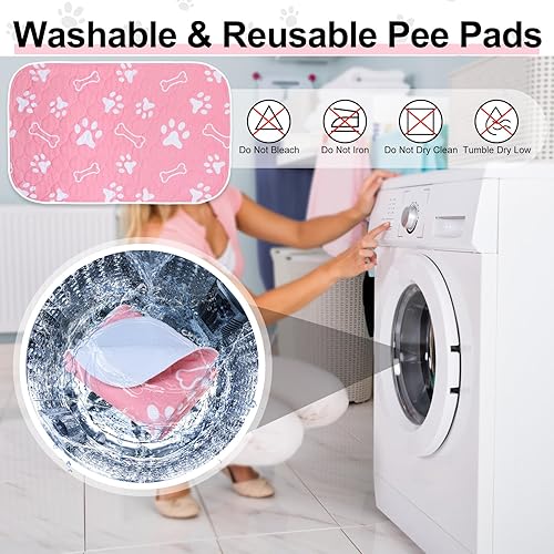 Washable Pee Pads- Pet pee pads are repeatedly tested, allowing our dog pee pads withstand to hundreds of machine wash and dry cycles. Just toss the pad in the washing machine and tumble dry on low, and it'll absorb like the first time. Saves a lot of waste compared to other disposable pee pads.