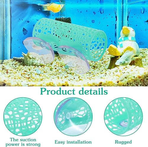 Size Detail: The aquarium tunnel size is 10cm in length and 4.2cm in width (3.94 x 1.65 inches), our betta tunnel is perfect for small fish and shrimp to swim through and hide. The betta tunnel while the included suction cups (5.3cm/2.1 inches) allow for easy installation