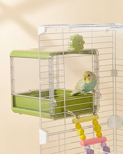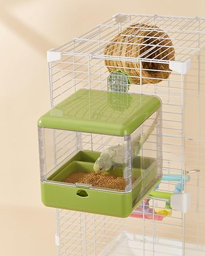 With dimensions of 17×17×18cm, this generously sized unit provides ample room for both bathing and feeding. The clever combination of these functions in a single unit makes it an ideal space-saving solution for your bird's daily needs.