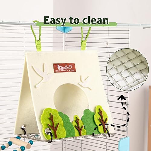 Easy to Install & Clean: Bird tent is equipped with sturdy metal hooks, bird hammock for cage is effortless to hang. Removable bottom grid makes easy cleaning, maintaining a hygienic environment for your feathered friends.