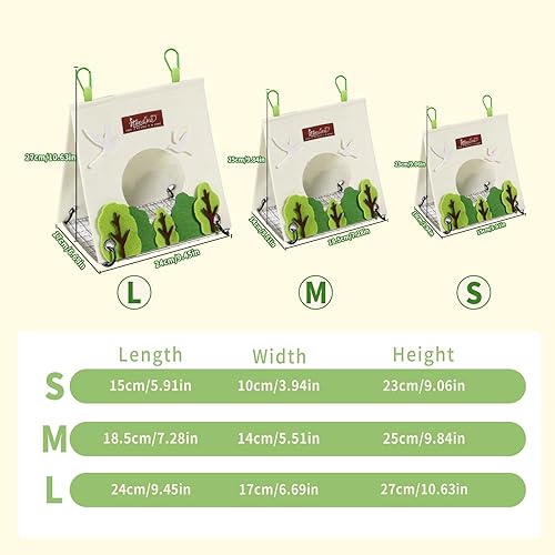 Multiple sizes of bird bed: There are three sizes of bird beds, and bird beds are suitable for different species and sizes of birds. The spacious interior of the bird hut provides plenty of space for rest, play and feel safe, making the bird tent a must-have bird bed or bird hammock. Please find the right size for your pets to give birds an ideal hiding place.