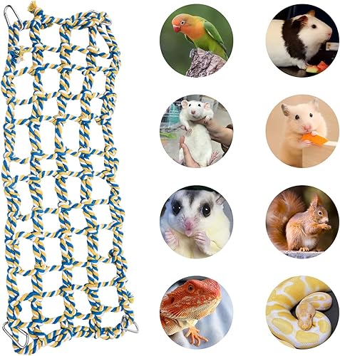 【Bird Cage Accessories】: Add a fun and practical touch to your pet's habitat with this long rope bridge. Perfect for a variety of small pets, including birds, hamsters, rats, guinea pigs, sugar gliders, squirrels, and reptiles. It’s a simple way to enrich your pet’s environment and encourage physical activity.