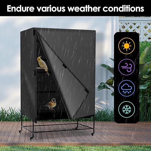 Waterproof Oxford Fabric : Made of oxford cloth with a waterproof surface . It features high-quality double stitching to enhance durability . It protects pets in the cage from , , , sudden rain and other elements