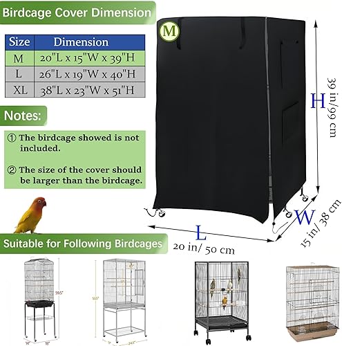【Universal Fit】 The size of large pet cage cover is 20"L x 15"W x 39"H, fits for most brand 3-tier pet cage, such as Yaheetech 64-inch birdcage, please measure your cage dimension before purchasing.