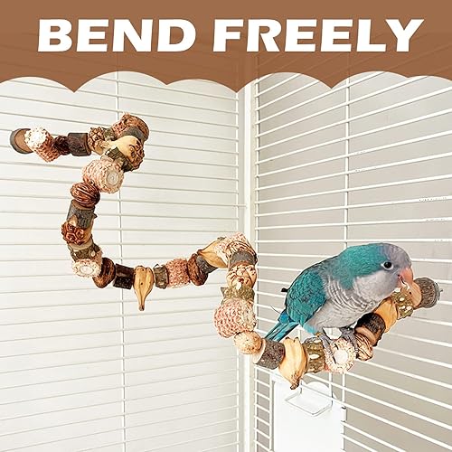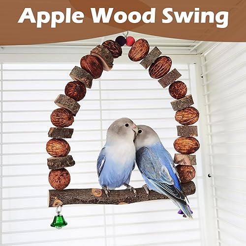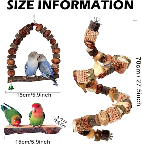 What you get -- Our bird chew toys set include an apple wood perche stand, a apple-wood swing, and bendable chew ladder — Perfect for cage life, it creates a wild-inspired playground where small birds like budgies and lovebirds can climb, perch, and explore safely.
