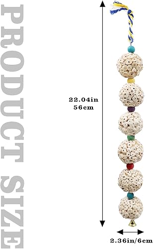 Compact and Convenient Design: Measuring 2.36 inches in diameter and 22 inches in total length, this bird toy boasts a compact yet engaging design. The colorful cotton rope on top allows easy hanging, ensuring quick and convenient installation and removal.