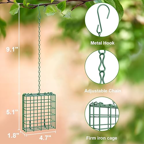 Easy use and no need cleaning: This cage feeder features an easy-open lid for convenient refilling and cleaning and holds one suet cake. It is great for filling with suet, seed blocks, fruit or bird nesting material. Simply mount the feeder with the metal hook and watch the birds gather