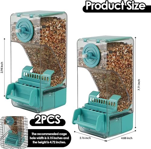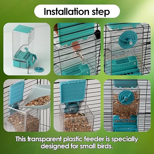 No Mess Bird Feeder: The top lid can be opened for easy addition of bird food. Curved self-sliding design, automatic feeding without jamming, uneaten seed stays in the removable bottom box underneath to keep the bird cage or room clean.