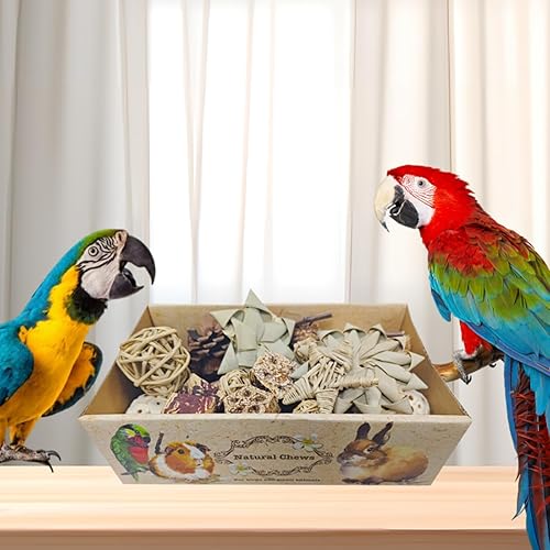 【Stimulates Natural Behavior】Bird Chewing and Foraging Box encourages entertainment,mental stimulation and physical exercise,is parrot puzzle toys and ,This natural bird toys making it ideal for bird foraging toys enthusiasts and promoting overall well-being. Perfect for parakeet foraging toy activities.