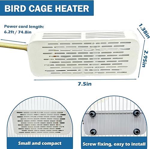 Safe and Sturdy - This bird cage heater features a metal mesh exterior that not only prevents birds from touching or burning themselves but also emits harmless light, providing a secure environment for your feathered friends. Additionally, chew-resistant metal springs protect the power cord, further enhancing safety so you never have to worry about your pet damaging the wiring