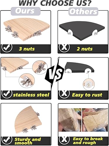 Natural Material:The bird perch platform are made from 100% natural wood and stainless steel nut, our parrot cage perch surface polished smooth,safe and stable,nuts and washers are stainless steel for durability. Natural wood is suitable for birds to chew and eat, and it is a good place for birds to relax and entertain
