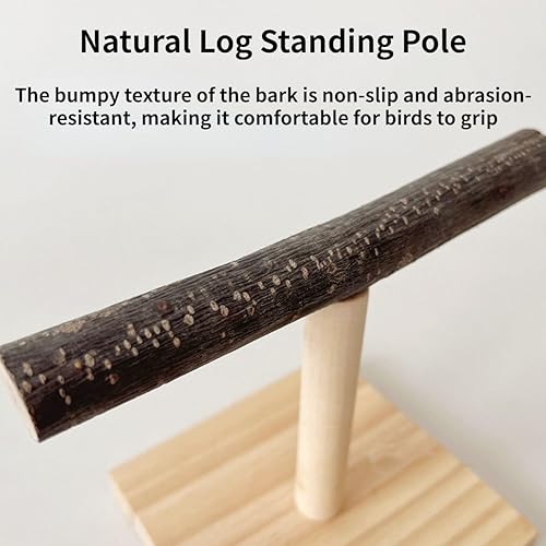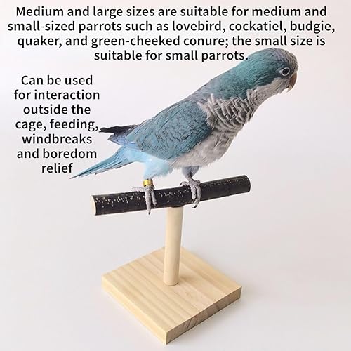 Ideal for small and medium sized birds such as conures, parrots, parakeets, lovebirds, budgies and parakeets. The material of the black standing pole on top is apple wood.