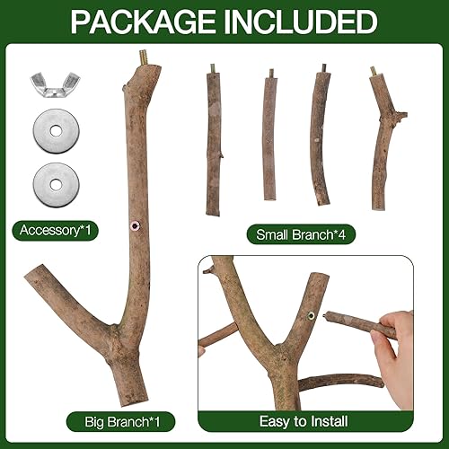 Safe Material: The birdcage branch perches are made of Natural Vitex Negundo Wood, free of paint and wax which is safe for your bird's chewing and playing. The original texture takes care of the health of birds' claws, creating a safe and non-toxic environment for your feathered friends. As each branch is cut from natural trees, there will be slight differences in shape, length and thickness.