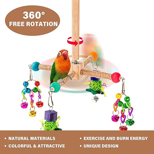 DIY BIRD PERCH TOYS: This interactive parrot perch toy include four natural sisal-wrapped wooden perches and each perch has a ring to hang your bird’s favorite chew toys. The 360° rotating design keeps your lovely bird engaged while combining rest, play, exercise, and chewing into one dynamic setup. You can manually rotate the perch to enjoy interactive play with your bird.