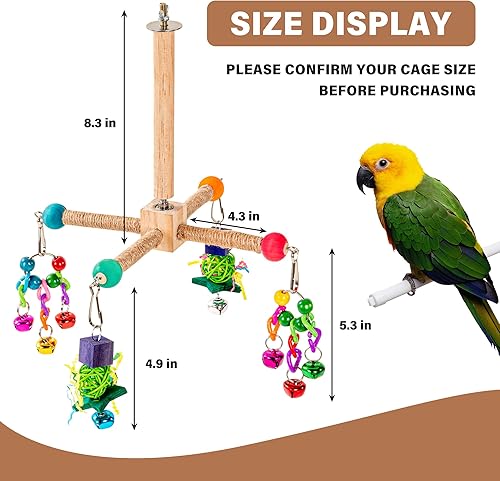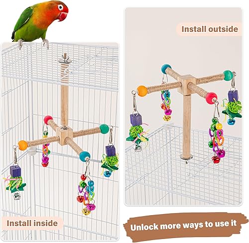 4 SMALL BIRD CHEWING TOYS INCLUDED: Enhance the fun with 4 colorful bird cage toys----2 Chew Toys: Made with colorful wooden blocks, a woven vine ball, and a jingling bell. 2 Plastic Ring Toys: Featuring bright beads, rings, and a cheerful bell. Mix and match these toys on the perch’s rings to customize your bird’s playtime!