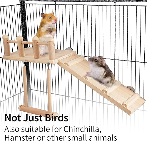 【 Dimension】- Swing- 14 * 15cm/5.5"(L) * 5.9"(W), A ladder- 10 * 24cm/3.9(W)" * 9.4"(L); Stand Platform- 12 * 18 * 6cm/4.7(W)" *7.1"(L) * 2.4"(H). Suitable for most cages
