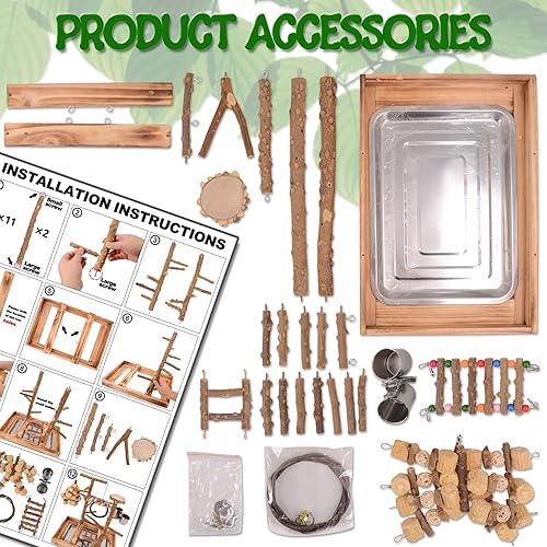 Activity Center: With bird toys (including bird chewing toy, bird swing, platform, perches), it provides a wealth of activities and entertainment methods for your feather friends, help to release energy and anxiety and reduce boredom