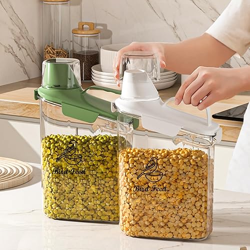 【BPA-Free Bird Seed Storage Container】 - This airtight pet food storage containers with airtight lids are made from high-quality BPA-free materials.Featuring a measuring cup and a pour spout. Keep all seed fresh and ready to use,ideal for storing wild bird seed ,sunflower seed,fruit and nut seed,Thistle Seeds .
