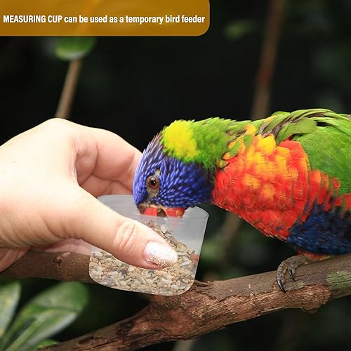 【Bird seed dispenser】 - The measuring cup has a scale, which allows for more scientific feeding,also can be used to fill bird feeder directly, Pour Spout Make Feeding Fun and Saves Feeding the Ground.