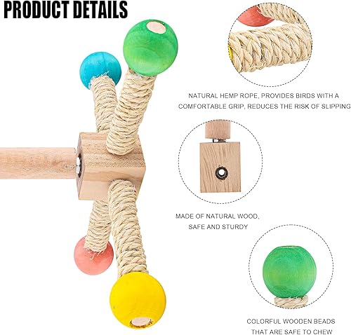 Practicality: Equipped with hemp ropes to provide birds with a comfortable grip and lower the risk of slipping, as well as colorful wooden beads that can be chewed safely for chewing, sharpening beaks, etc.