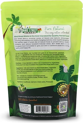 Bird Street Bistro Parrot Food - Parakeet & Cockatiel Food - Cooks in 3-15 min with Natural & Organic Grains, Legumes, Non-GMO Fruits, Vegetables & Health Spices(Green Goodness,2 Ounce (Pack of 1))
