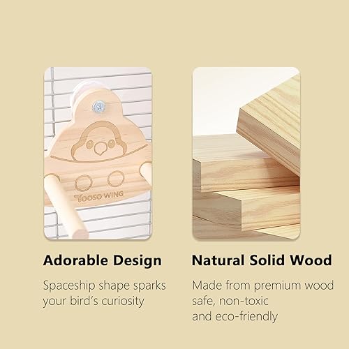 Natural Wooden Bird Toy: Made of smooth-sanded solid wood with no splinters. Features a parrot cartoon pattern for cage decoration