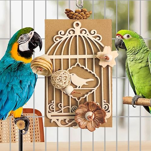 Natural & Safe Materials Carefully selected natural materials beloved by parrots - featuring an eco-friendly cardboard base combined with chewable dried starfruit, palm fiber stars, apple wood blocks, corn cob strands, soft silky grass bundles, and natural wooden beads. Completely safe and healthy, allowing your feathered bird friends to fully enjoy exploring and chewing!