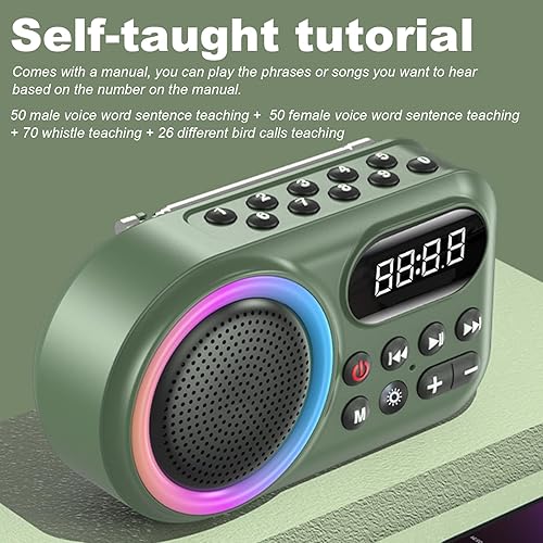 Comes with Educational Materials: We provide rich educational materials for this training toy, from everyday phrases to melodious whistle songs and various bird calls. It's very helpful for training your pet bird to speak. When you turn it on, you can access the materials we've provided. If you want to use other features, our manual has detailed instructions, making it simple and easy to operate.