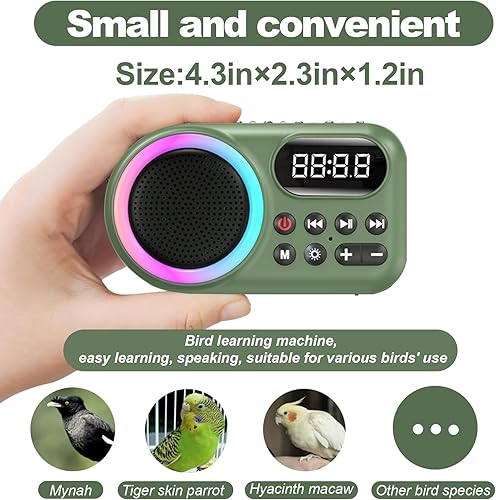 Colorful Lights: The combination of music and colorful lights makes the learning process for the bird even more enjoyable. You can adjust the light effects to your liking, and when you don't want to use the light effects, you can simply turn them off. We believe you and your bird will both love this learning toy, as it ignites your bird's desire to speak and provides endless fun!