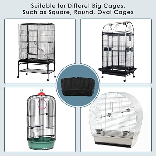 Air circulation: Birdcage seed guard is made of mesh fabric. The fine mesh covering allows air and light to pass easily, keeping pets cool and relaxed, providing a comfortable living place for your birds, pet owners can too see their pets clearly