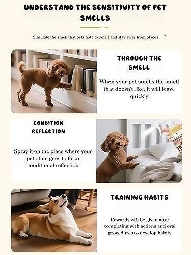 Natural Plant-Based Formula Made from 100 % natural botanicals, this dog-repellent spray forms an odor barrier that quickly discourages unwanted chewing on clothes, shoes and furniture, licking of objects, and indoor marking. It contains no harmful chemicals, giving you a safe, humane way to train your pet.