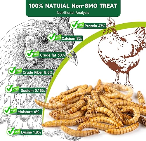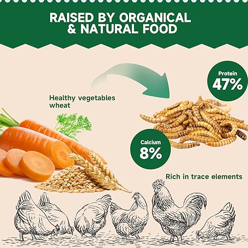 【Boost Immunity & Healthier Chickens】: Tired of worrying about the health of your chickens? Our dried meal worms for chickens are a natural solution, it can enhance gut health and strengthen the immune system, they help your birds better fend off challenges. Invest in prevention for birds full of vitality and vigor.