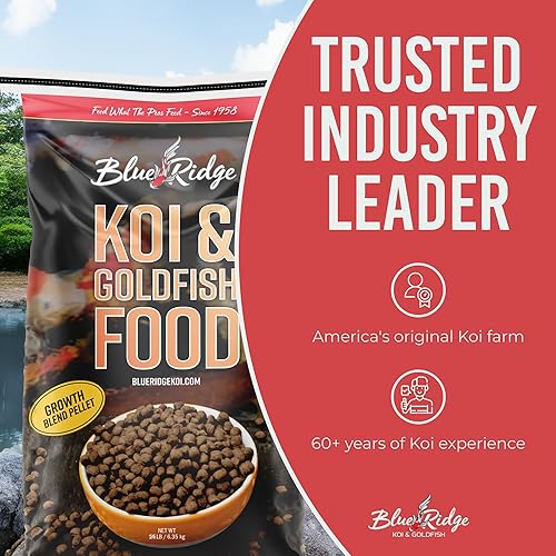 Blue Ridge Koi Fish Food 2lb - Koi Food 3/16” Large and Mini Blend Growth Formula, Goldfish Food, Premium Fish Food for Ponds, Ponds Fish Food, Floating Pond Pellets(25 Pound (Pack of 1))