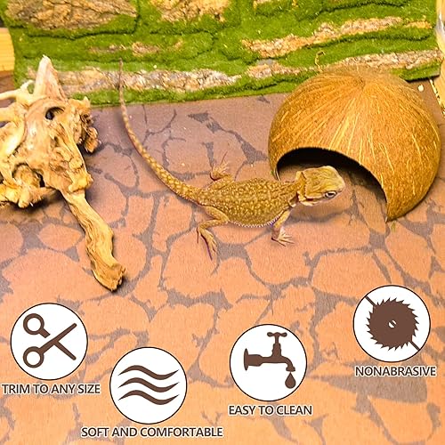 Durable Material: Our reptile carpet can be used on both sides and is also easier to wash and clean, you can easily roll up the soft mat and shake off the clutter, just rinse with clean or soapy water and hang up, the mat dries quickly and looks like new.