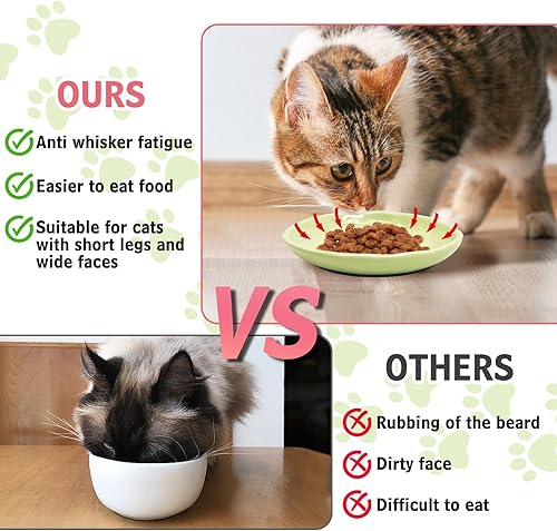 Whisker Friendly: The wide and shallow design of the cat bowl allows cats to eat without rubbing their whiskers too often, easy access to food and prevents whisker fatigue, allowing them to enjoy a comfortable and natural dining experience