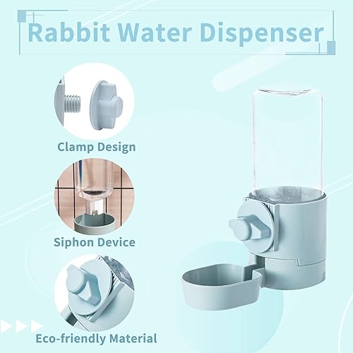 Easy to Clean: Each part of the bunny feeder dispenser can be disassembled, it is easy to clean, Directly remove the bunny food and water dispenser, rinse with water and dry it before giving it to your pet